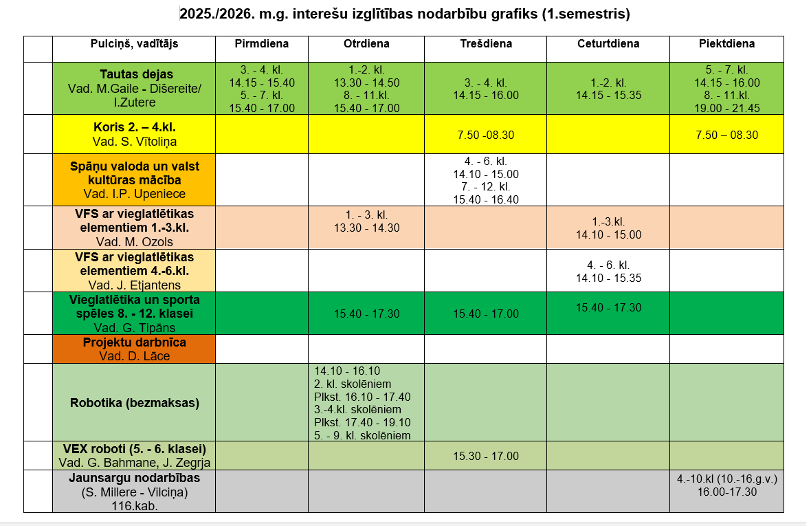 2025./2026.m.g. interešu izglītības nodarbību grafiks (1.semestris)